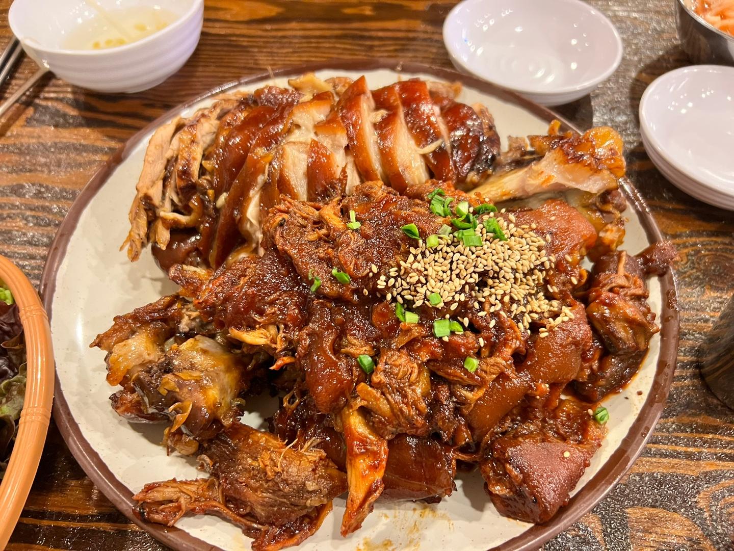 공간/느낀 점 선릉!! 수많은 회사가 많은 이곳에 당당히 맛집으로 본관과 별관까지 사람들로 가득찬 맛집이다. 본관 지하로 내려가면 중앙에 반찬을 챙겨갈 수 있는 셀프공간이 있고, 룸과 여러개의 태이블이 있다. 내부는 과거 주막과 같이 한옥에서 볼 수 있는 나무 창문과 기둥, 나무로 구성된 정겨운 내부 공간을 볼 수 있다. 김치와 콩나물국 밑 반찬들도 족발의 맛을 더욱 살려준다.