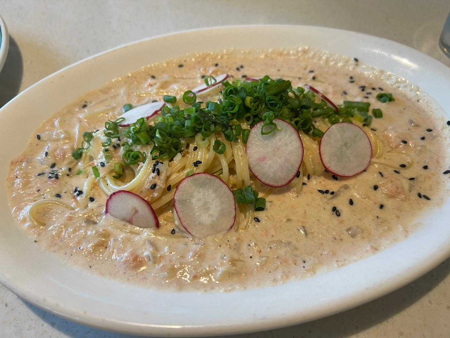 미금역 2번출구 먹자골목 사이 블랙간판에 흰색 긴자료코가 보인다. 내부 일본 만화에서 많이 보던(나루터 라면집) 바테이블 ㄷ자 구성으로 되어있고, 바테이블에서 느낄수 있는 쉐프님과의 유대감과 감성을 느낄 수 있다. 돈가쓰가 굉장히 바삭하고 돈까스 위에 뿌려진 소스가 돈까스의 풍미를 더해준다. 그리고 센스있는 와사비까지!!, 수란과 명란이 살포시 올라가 있는 명란 크림우동은 너무 자극적이지 않아 수란의 고소함과 명란의 맛을 부드러운 크림과 함께 풍성하게 느낄 수 있었다.