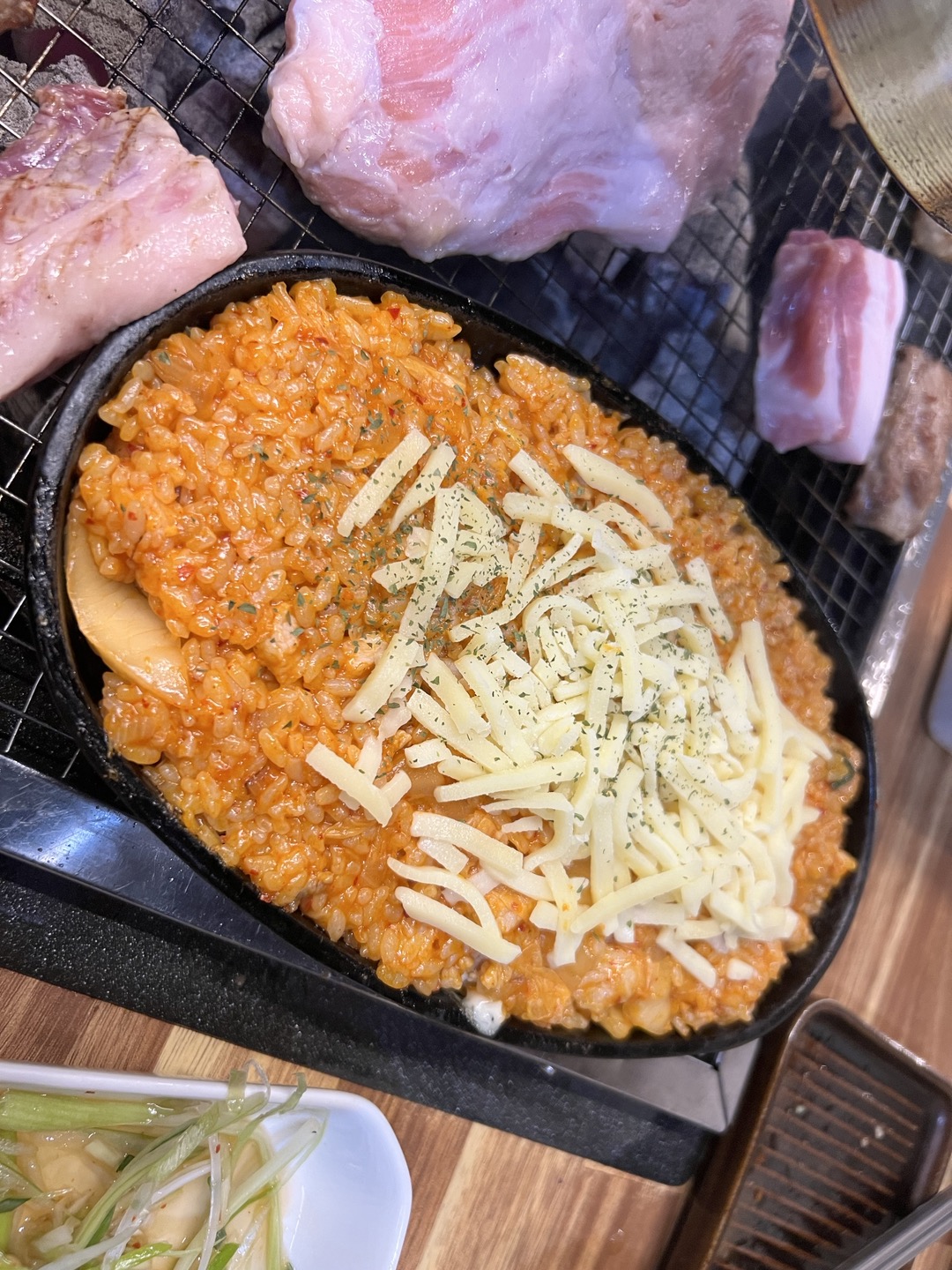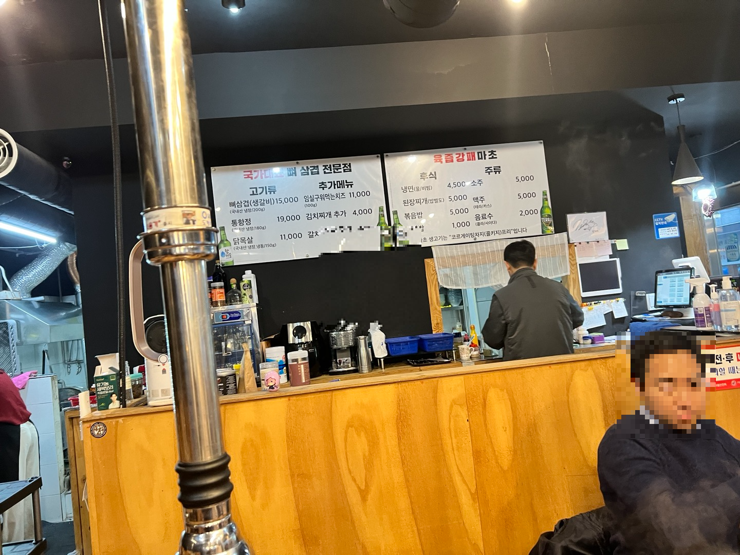 미금일대!! 수많은 고깃집을 다 돌아본 주부님의 추천맛집!! 회색석재 입면에 붉은 컬러로 존재감을 확실하게 보여주는 외관!! 가장 눈에 띄는 말은 간판 옆 "육즙깡패 마초" 라는 글귀이다. 사장님의 고기에 대한 자부심이 느껴진다. 내부는 테라스와 안쪽으로 구성되어 있고, 깔끔한 목재들로 되어 있었다. 들어가자 마자 가장 놀라운 사실은 꽉찬 테이블 손님들이 고기를 굽고 있었는데, 냄새가 전혀 나지 않는다는 것이다. 환기시스템을 통해 고기 냄새가 나지 않도록 하였다고 한다. 손님을 사랑하는 사장님의 마음을 느낄 수 있다. 고기의 맛은 정말 일품이다. 고기는 뼈에 붙은 살들이 맛있는거 아시죠?? 생고기 이기 때문에 고기 누린내가 없고, 뼈삼겹!! 우리가 알던 삼겹살 보다 고기의 풍미가 가득하다!! 또한 통항정(항정살 덩어리가 나온다.)통으로 구울 수 있어서 육즙이 빠지지 않아서 항정의 고소한 맛을 더욱 느낄 수 있다.(두툼하게 잘라서 먹는 것을 추천_ 육즙이 팡팡터지는 맛을 느낄수 있다.), 고기 뿐만이 아니라 식사류인 볶음밥, 김치찌개 또한 사장님의 정성과 사랑이 담겨 배와 마음을 가득채워준다. 명의나물은 무한리필(고기집 사랑의 끝)로 제공해 주신다.