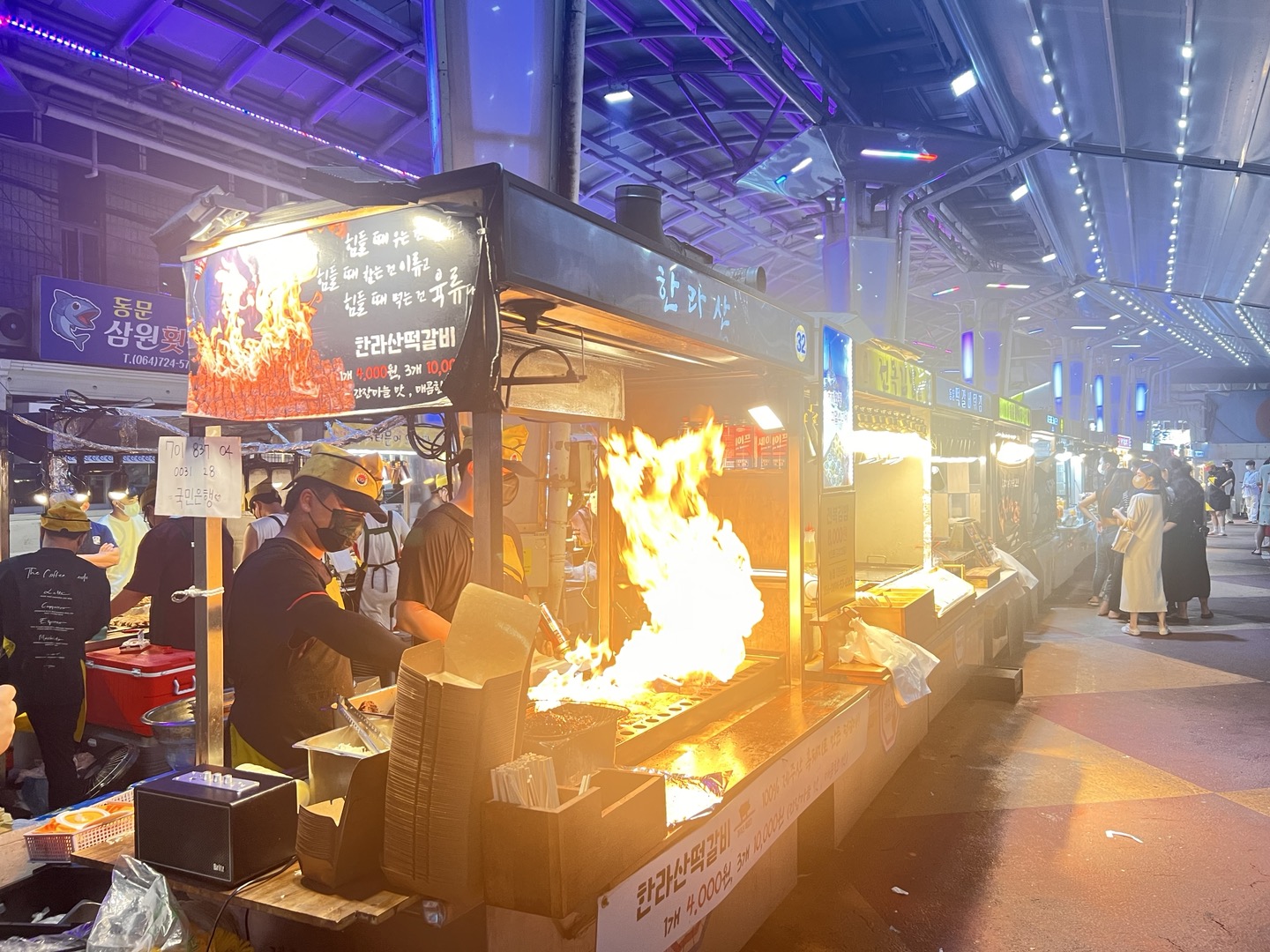 제주 동문시장의 밤은 아주 뜨겁다. 낮에는 많은 특산품과 제주시민들로 북적이는 동문시장은 밤이되면 여행객의 먹거리 성지가 된다. 상점과 푸드트럭의 수산물, 분식, 고기, 면요리등 모든 여행객의 입맛과 풍기는 음식 냄새가 코를 자극한다. 다양한 먹거리를 포장해 함께 여행하고 있는 친구들과 든든한 제주의 밤을 마음껏 즐길 수 있는 동문야시장을 소개한다.