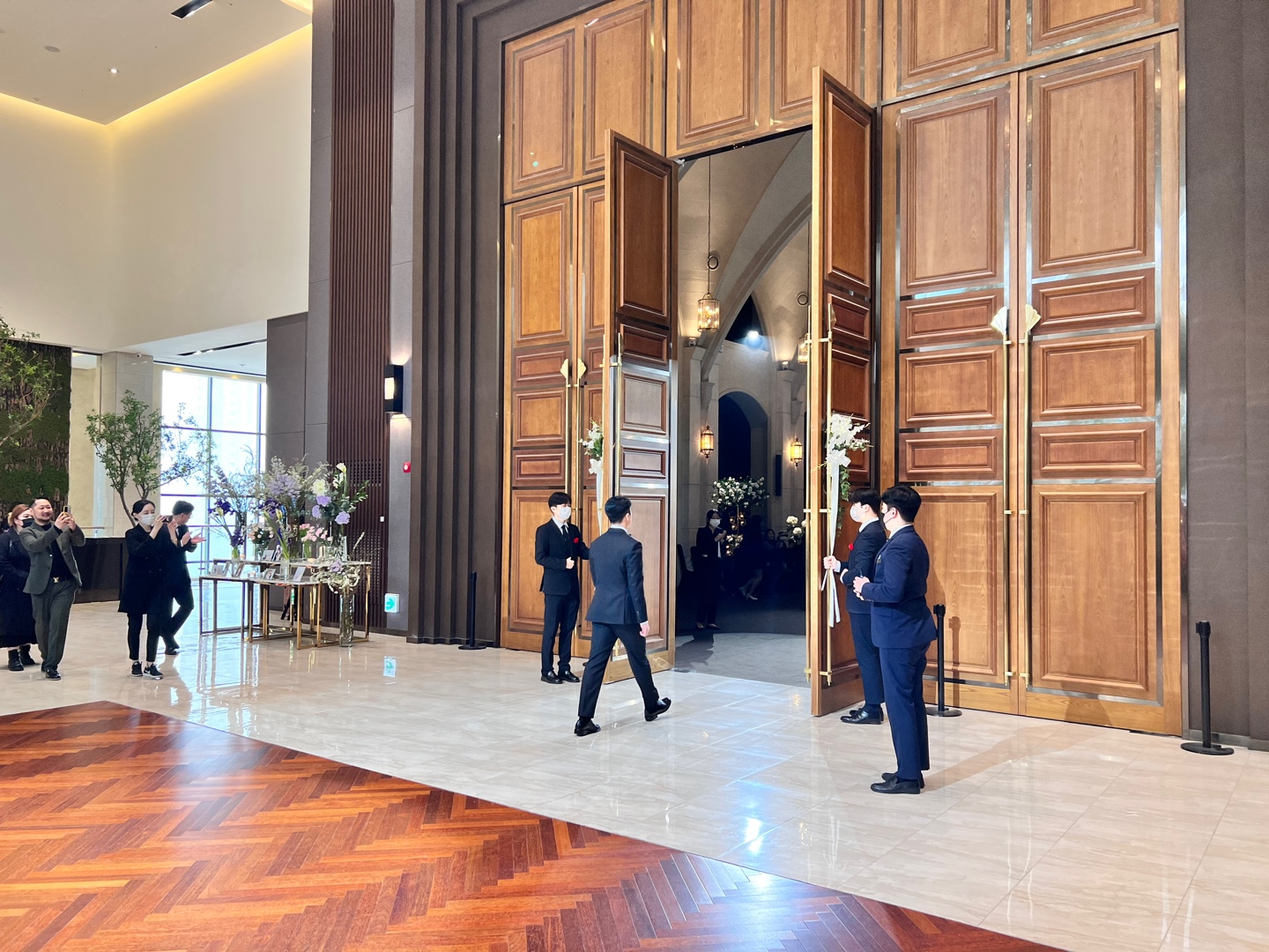 로비는 높은 층고와 식재를 통한 내부 인테리어로 자연에 들어온 듯한 신선함을 준다. 2층에는 작은 테라스가 휴식공간을 제공한다. 웨딩홀 입구 거대한 문은 입장하는 사람에 대한 집중과 기대감을 주는 것 같았다. 또한, 웨딩홀의 내부 공간은 화이트 톤과 아치를 통해 개방감과 우아함을 살려 신랑, 신부의 행복한 결혼식의 시작을 알리는 공간이 된다.