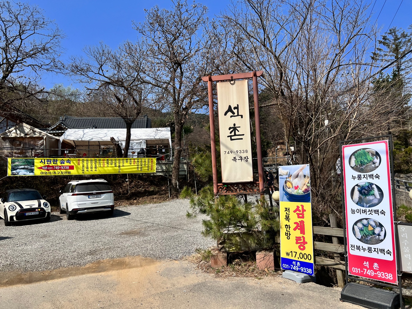 남한산성 산책 후 후들후들한 다리를 달래 주는 그곳!! 백숙 맛집 석촌이다. 넓은 마당과 족구장 그리고 든든한 백숙이 있어 회사 야유회와 남성분 모임의 성지가 된다. 가정주택을 식당으로 리모델링을 하여 만든 것 같고, 야외에서 식사를 할 수 있어서 더욱 쾌적하고 상쾌한 공기를 마시며, 맛있는 식사를 할 수 있어서 매력적이다. 백숙은 담백하고 깊은 육수의 맛이 일품이고, 닭고기는 부드러워서 좋았다. 닭도리탕은 얼큰한 맛이 좋았는데 특히 라면사리를 넣어 먹으면 그 맛이 배가 된다. 밑 반찬 뿐만이 아니라 전, 도토리묵 또한 백숙과 닭도리탕 만큼 석촌의 대표 메뉴로 자부한다. 족구 내기를 통해 이기고 먹으면 그 맛은 모든 분들이 상상하는 그 이상의 맛이다.