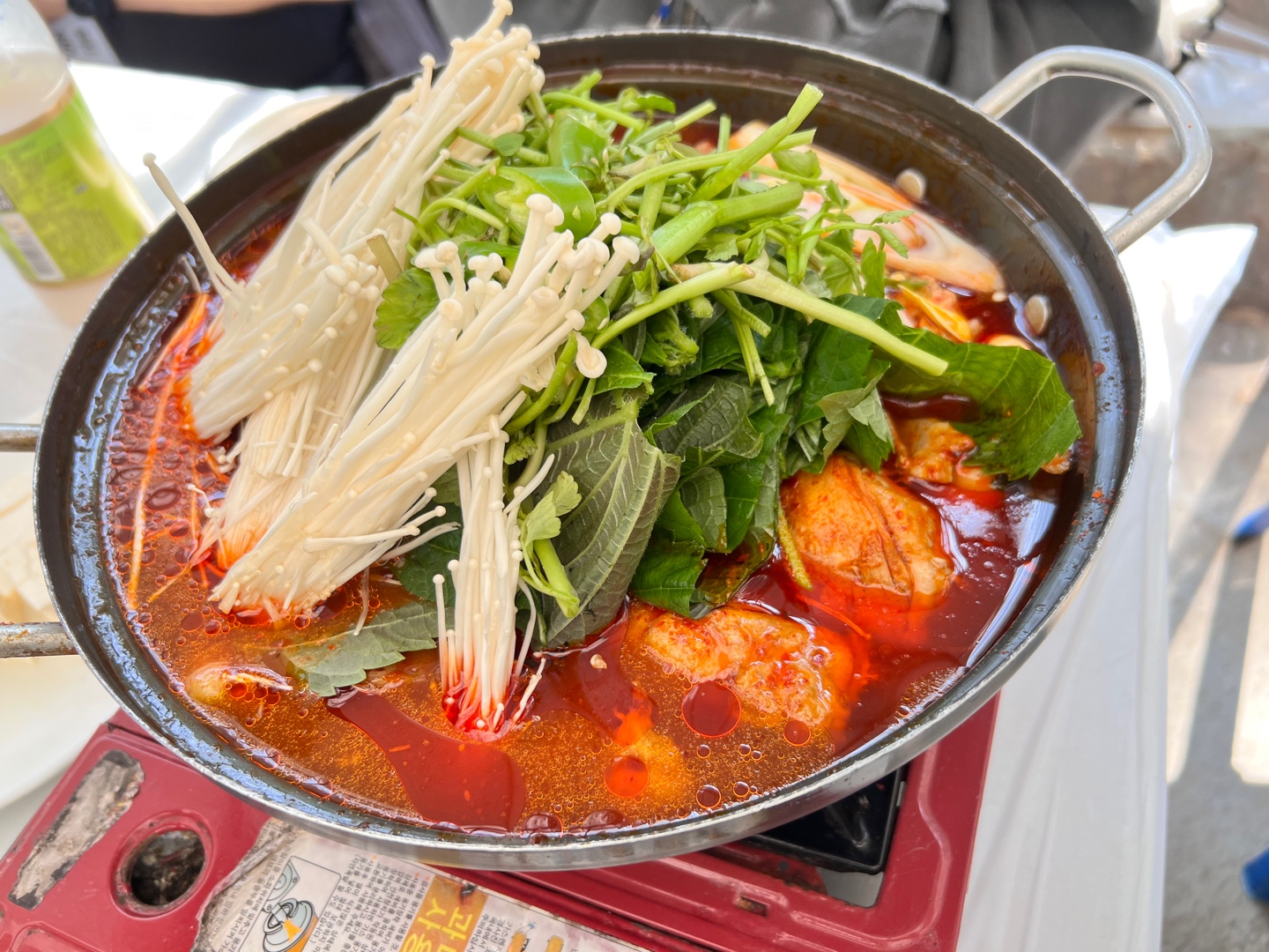 능이버섯의 위엄이 솟아 오른 토종백숙과, 얼큰한 고추기름과 향긋한 채소들이 올라가 있는 닭 볶음탕!! 그리고 음식의 꽃 막걸리가 조화를 이뤄 무릉도원을 만들어 준다. 남한산성의 정취와 맛있는 보양식을 드실 분들 추천!!